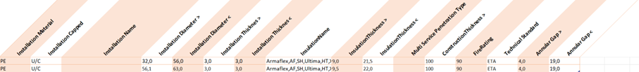 • Some cells can be filled with multiple values, for instance the InstallationMaterial.