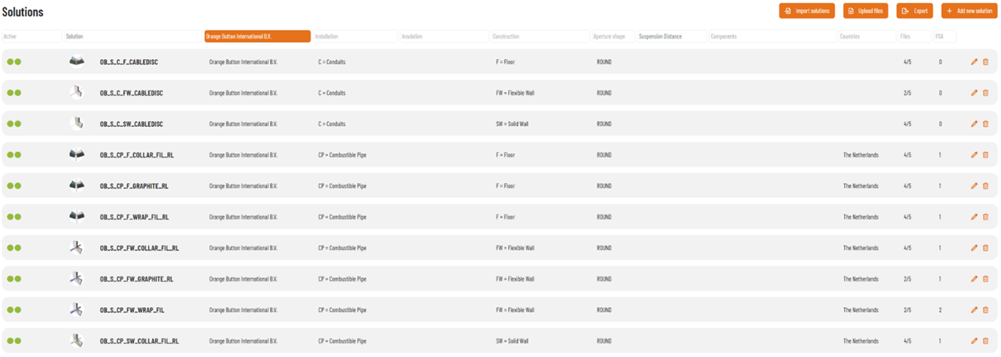 OB MANUFACTURER IMPLEMENTATION TIME Orange Button is making significant progress in connecting manufacturers and end-users within the passive fire industry. Since our platform is designed to compare every firestop solution, the implementation of a specific manufacturer’s products requires a tailored approach. Let’s begin with what our platform Needs. Solution List