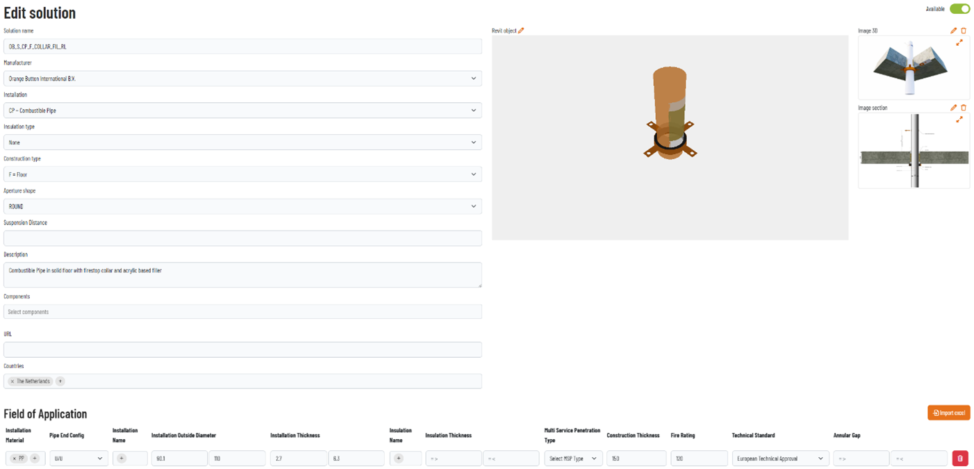 For instance, the FOA makes it possible to automatically select all the Manufacturer Solutions for every situation that Orange Button BIM has found in a project. Making every chosen Firestop Solution compliant to your tested Solutions.